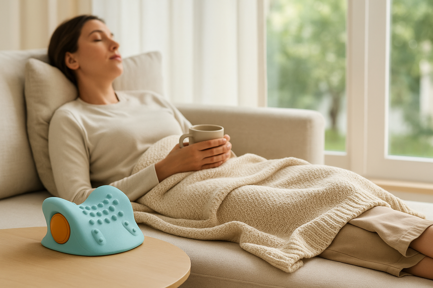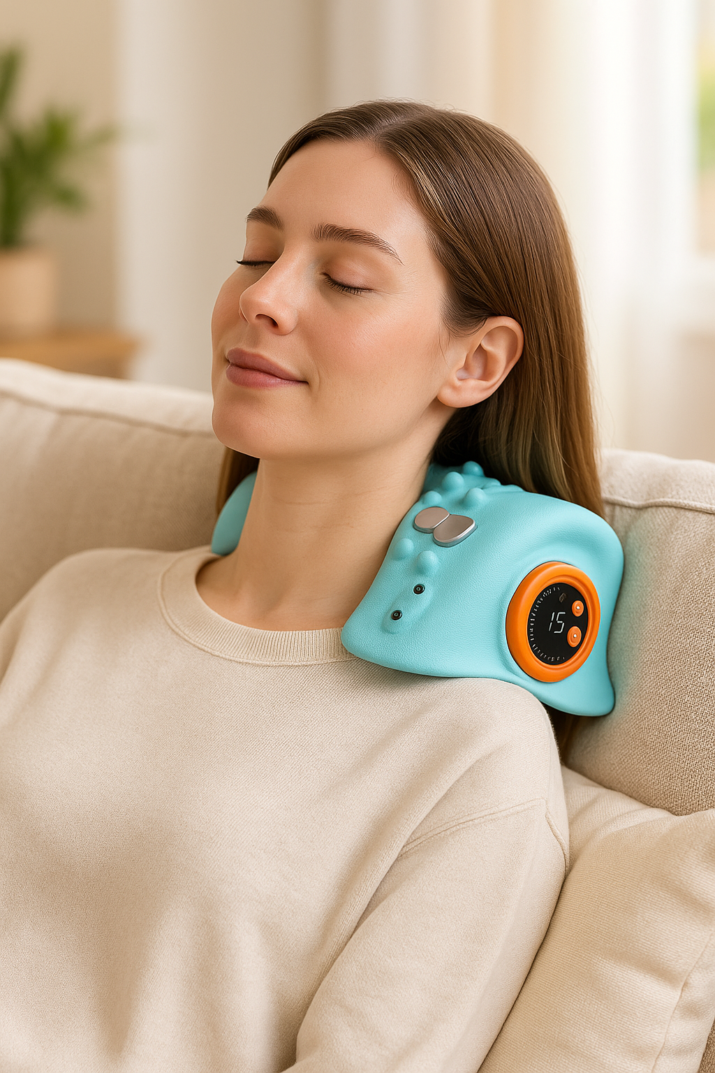 The Oliviq neck and shoulder massager features adaptable heat and vibration modes for versatile use across daily routines. Designed to complement any space with a minimalist, ergonomic form.